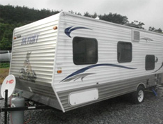 이동식 주택이란 뜻으로, 차 모양으로 된 캠핑 트레일러를 자연경관이 수려한 곳에 정해 놓고