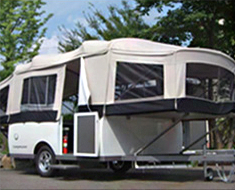 이동식 주택이란 뜻으로, 차 모양으로 된 캠핑 트레일러를 자연경관이 수려한 곳에 정해 놓고